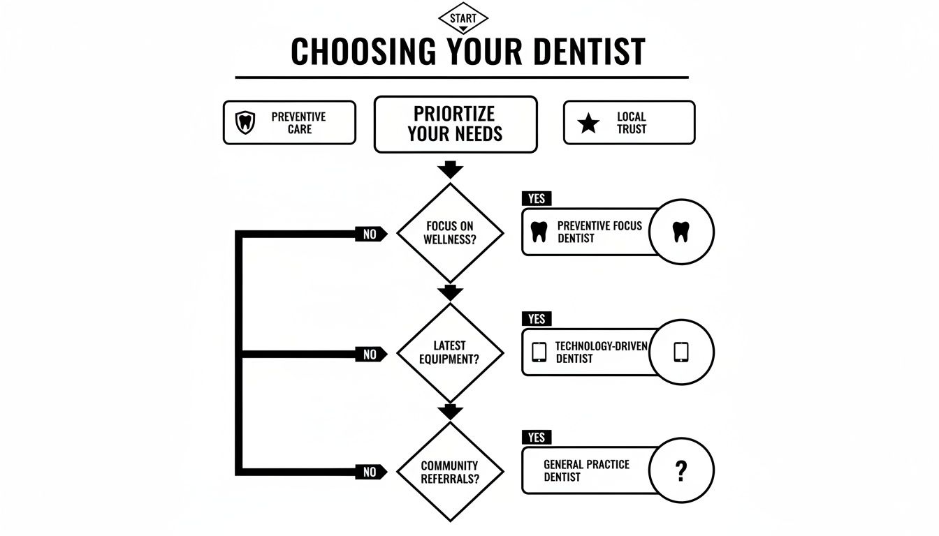 This visual decision tree breaks down the top three factors that Surprise families are prioritizing in 2026 when picking a new dentist.