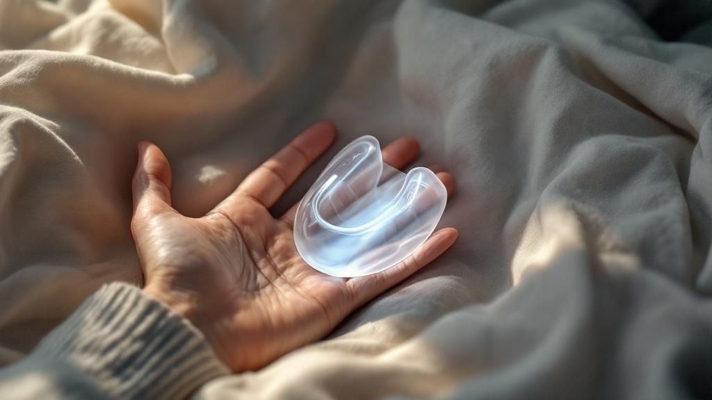 Think of it like an athletic mouthguard, but it's engineered specifically for sleep. A custom night guard creates a tough, protective barrier between your upper and lower teeth. So, instead of grinding your enamel against enamel, you grind against the guard's resilient surface, helping you avoid costly damage like chips, fractures, and worn-down teeth.