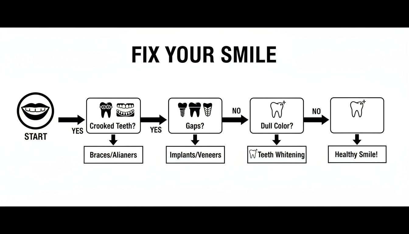 This decision tree infographic can help you visualize the path to choosing the best way to fix your smile without braces, based on your main concern.