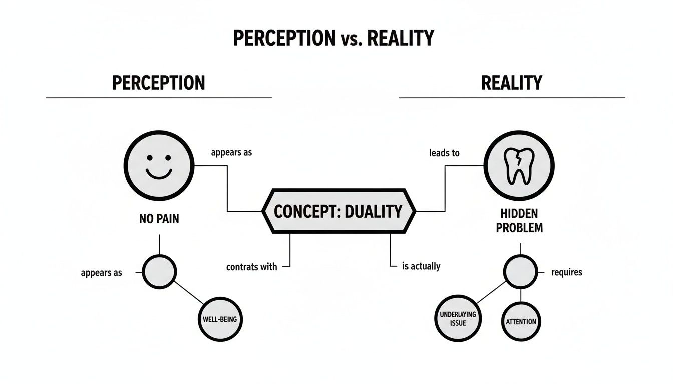 This visual captures the disconnect perfectly—the feeling of "no pain" versus the reality of a hidden problem brewing beneath the surface.
